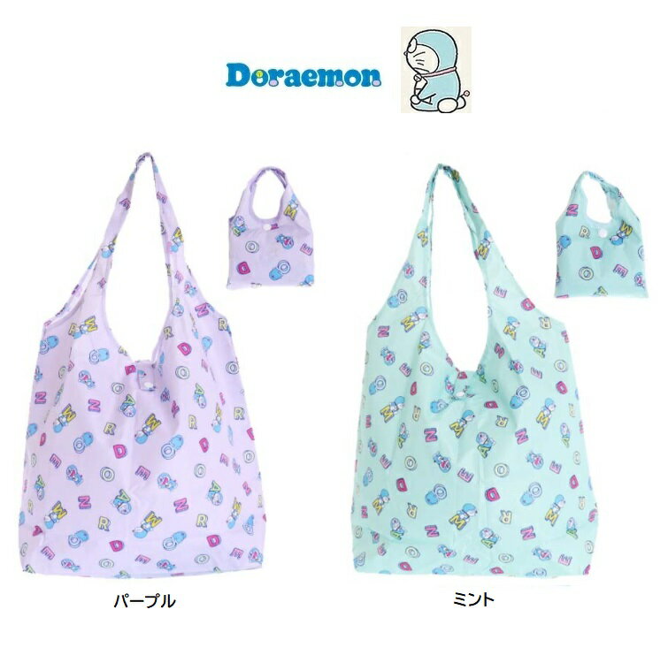 ドラえもん ミニポーチ付きエコバッグ トートバッグ ショッピングバッグ お買い物袋 ショルダーバッグ マザーバッグ ママバッグ 鞄 かばん ビニール コンパクト キャラクター 収納袋 総柄 丈夫 マチ付き CEB9-DR ミント パープル ピンク あす楽 メール便可